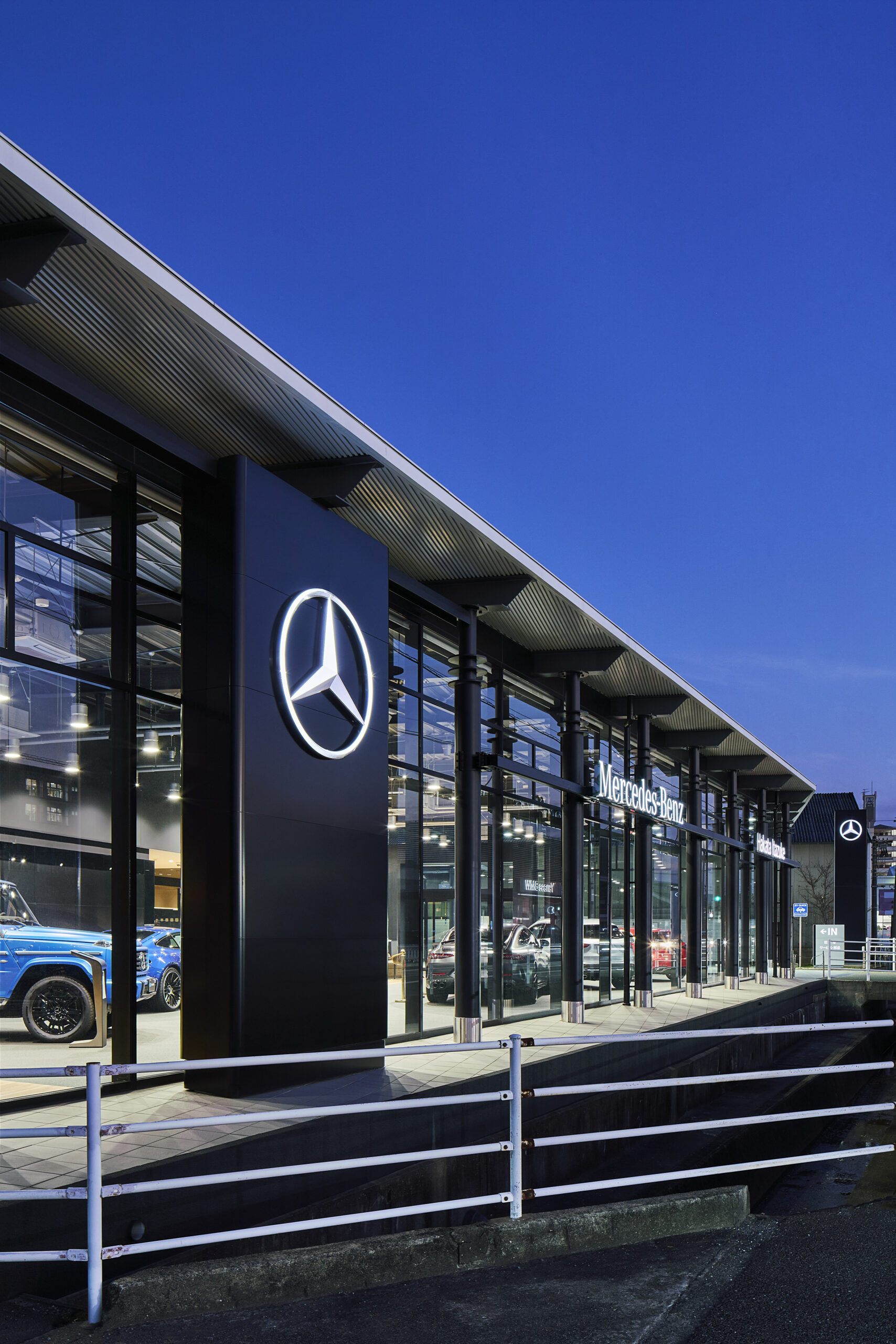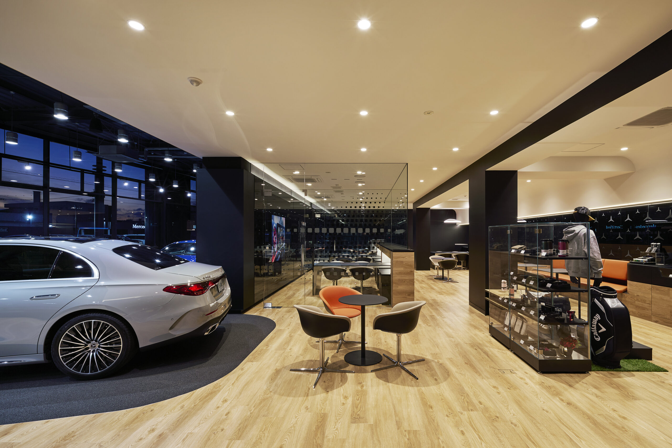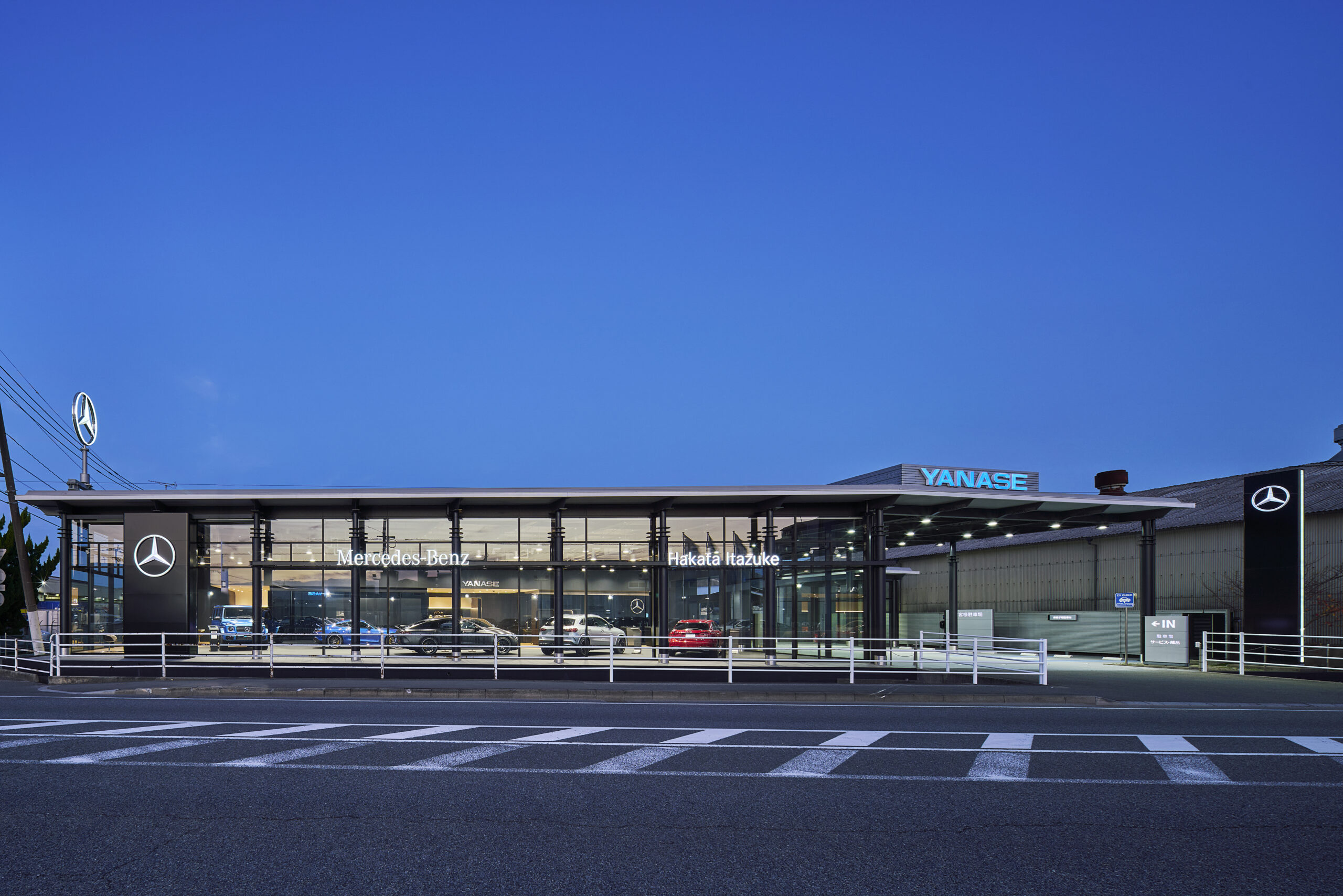 メルセデスベンツ博多板付 2024年8月1日 Summary 竣工 2025年10月 計画地 福岡県福岡市博多区井相田 計画種別 改修 用途 自動車ショールーム 構造 / 階数 鉄骨造/地上2階 敷地面積 3302.76㎡ 延床面積 2313.98㎡ 業務 基本設計&デザイン監修&CI監理 設計施工 株式会社イチケン 撮影 黒岩翼