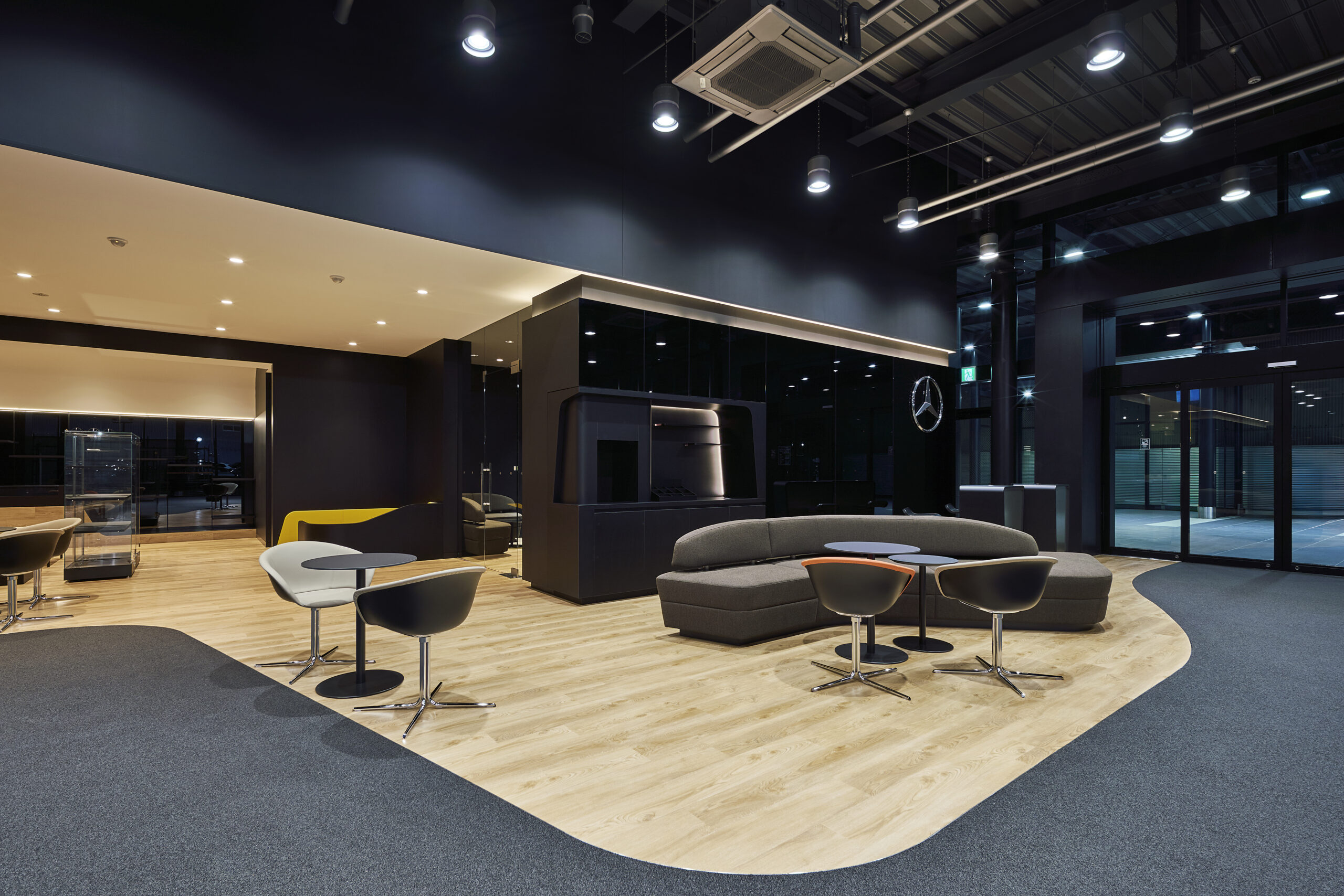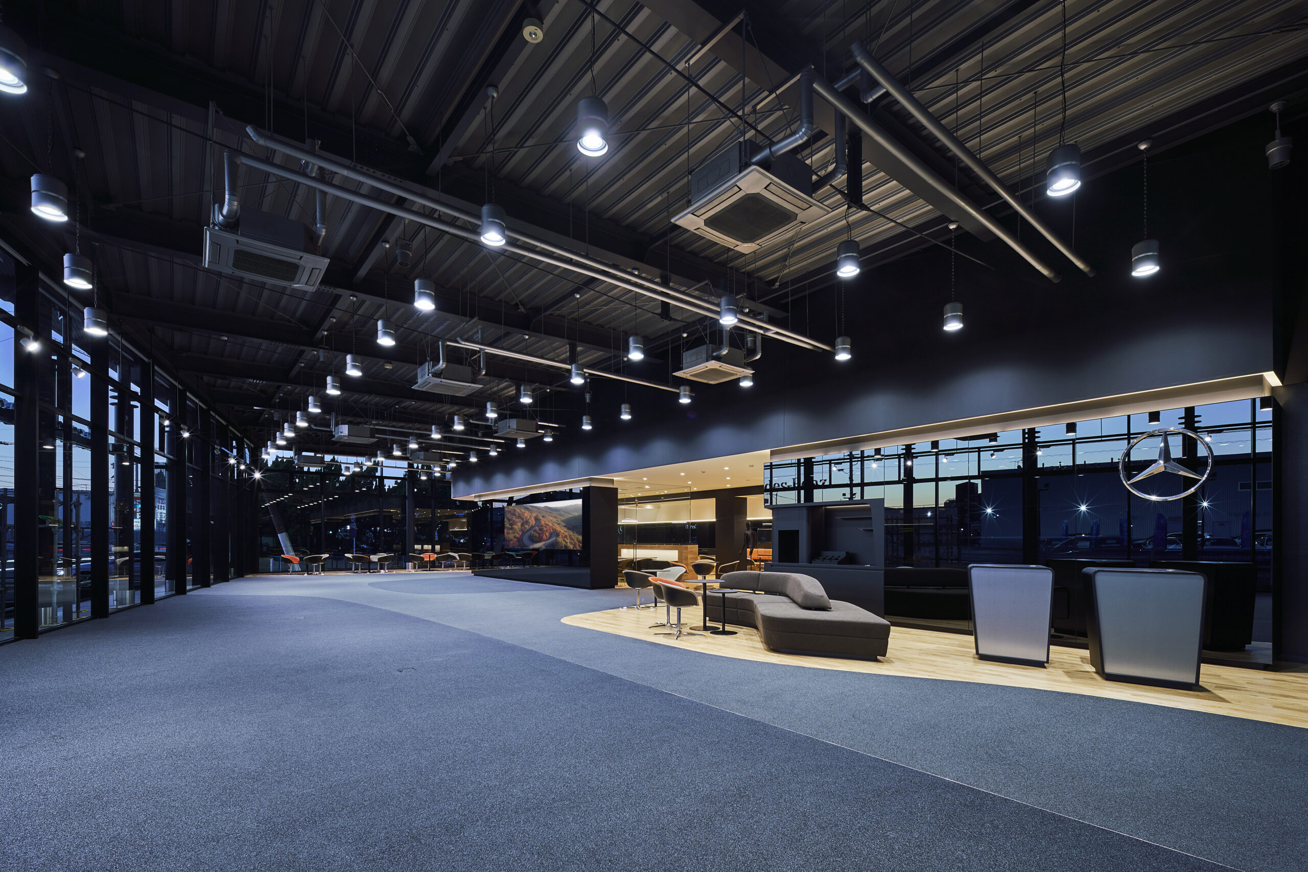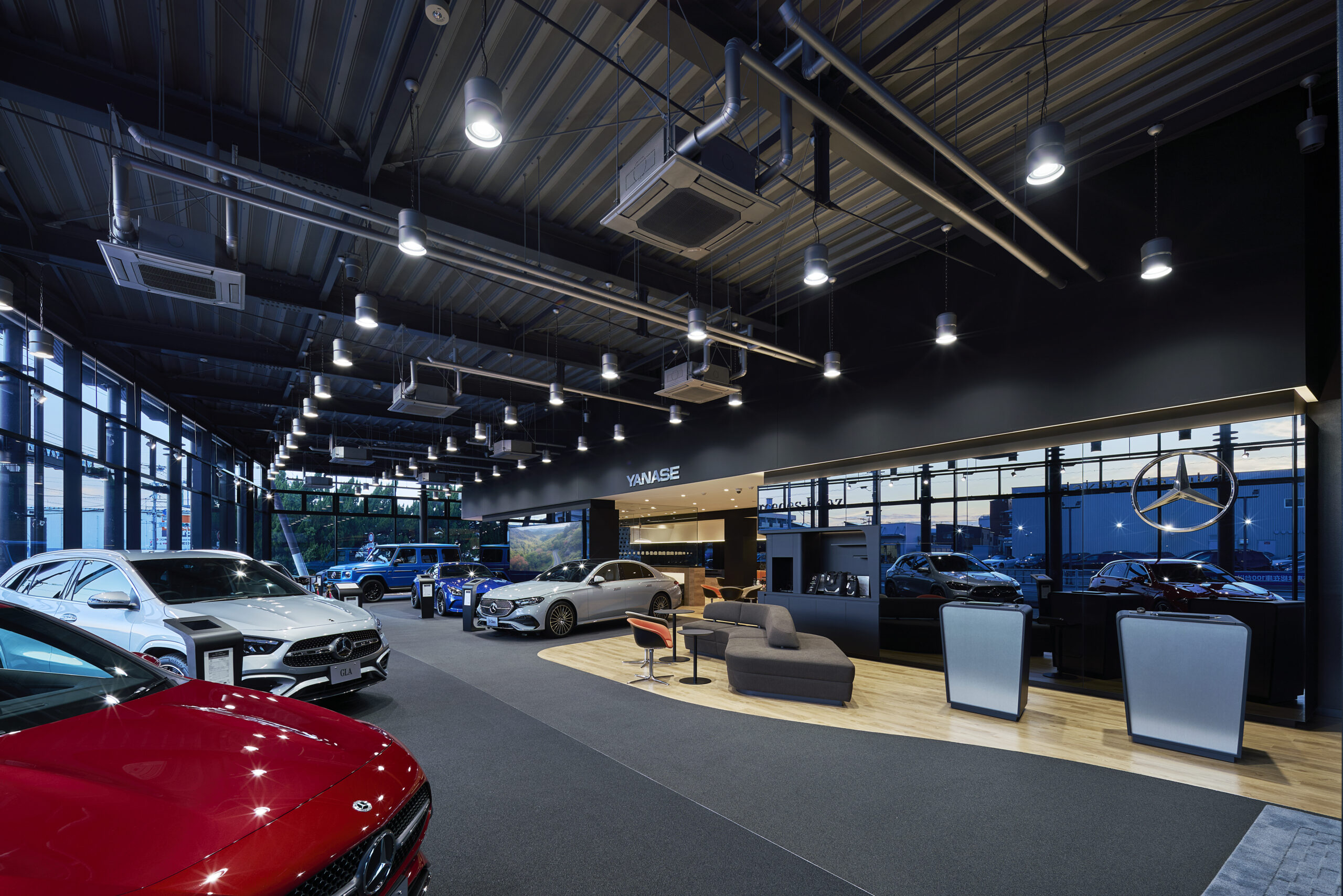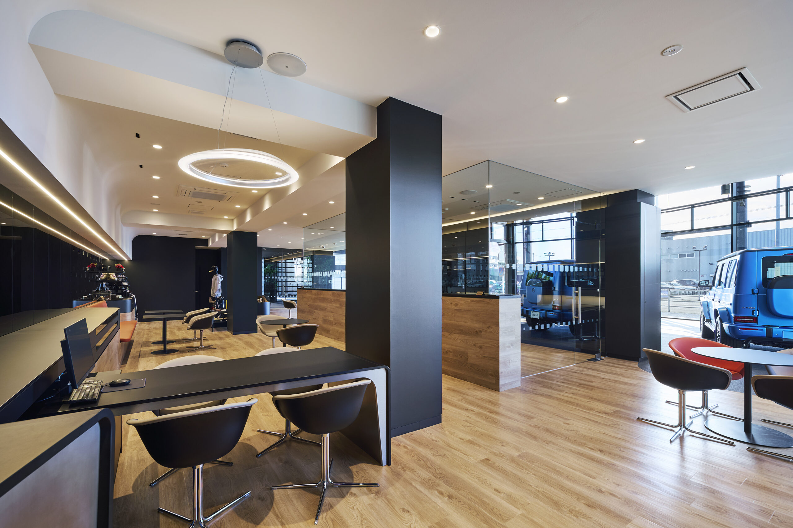 メルセデスベンツ博多板付 2024年8月1日 Summary 竣工 2025年10月 計画地 福岡県福岡市博多区井相田 計画種別 改修 用途 自動車ショールーム 構造 / 階数 鉄骨造/地上2階 敷地面積 3302.76㎡ 延床面積 2313.98㎡ 業務 基本設計&デザイン監修&CI監理 設計施工 株式会社イチケン 撮影 黒岩翼